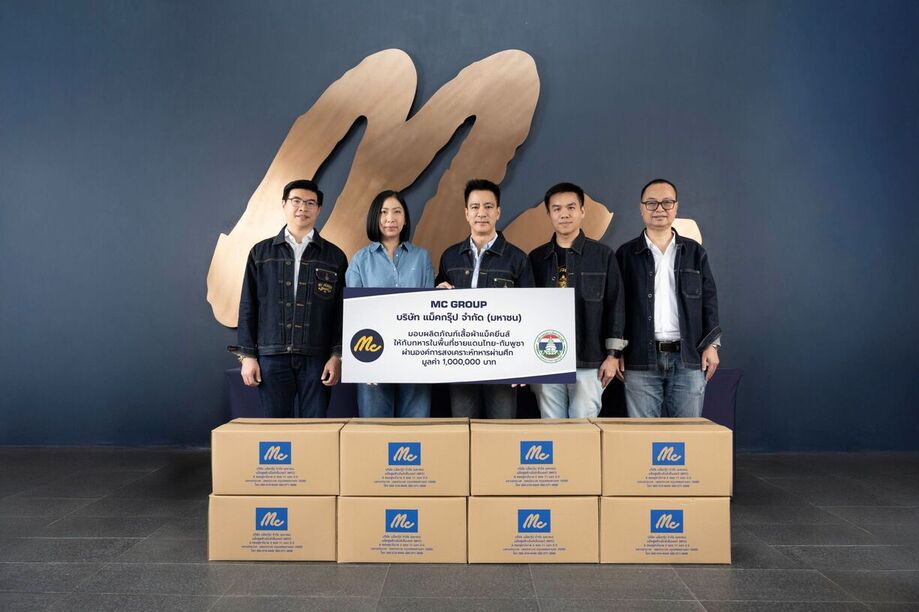 บริษัท แม็คกรุ๊ป จำกัด (มหาชน) หรือ MC องค์กรธุรกิจค้าปลีก ประเภทสินค้าแฟชั่นและสินค้าไลฟ์สไตล์ “แม็คยีนส์” นำโดย นายแมทธิว กิจโอธาน ประธานเจ้าหน้าที่บริหาร พร้อมด้วยทีมผู้บริหาร มอบผลิตภัณฑ์เสื้อผ้าเครื่องแต่งกายที่จำเป็นแบรนด์ “แม็คยีนส์” ร่วมส่งกำลังใจให้กับทหาร ในพื้นที่ชายแดนไทย-กัมพูชา ผ่านองค์การสงเคราะห์ทหารผ่านศึก มูลค่า 1,000,000 บาท ณ แม็ค สตูดิโอ บมจ.แม็คกรุ๊ป สำนักงานใหญ่ เมื่อวันที่ 4 สิงหาคม ที่ผ่านมา