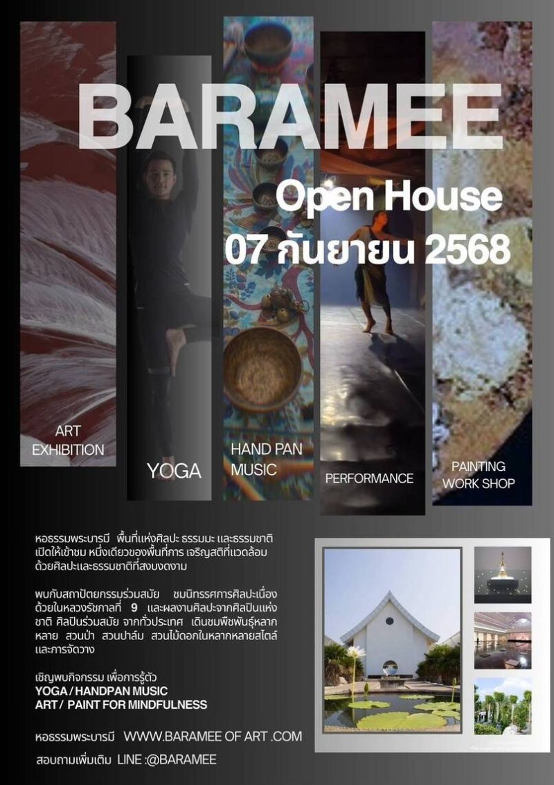 ขอเชิญชวนทุกท่านร่วมสัมผัสประสบการณ์แห่งความสงบงาม ณ หอธรรมพระบารมี จังหวัดฉะเชิงเทรา ซึ่งเป็นสถานที่ที่รวบรวมไว้ซึ่งศิลปะ ธรรมชาติ และธรรมะ เพื่อการเจริญสติ งาน Baramee Open House จัดขึ้นในวันอาทิตย์ที่ 7 กันยายน 2568 เวลา 09:00 – 16:00 น. เพื่อให้ผู้สนใจได้มาเรียนรู้การทำงานของกายและใจผ่านกิจกรรมที่หลากหลาย