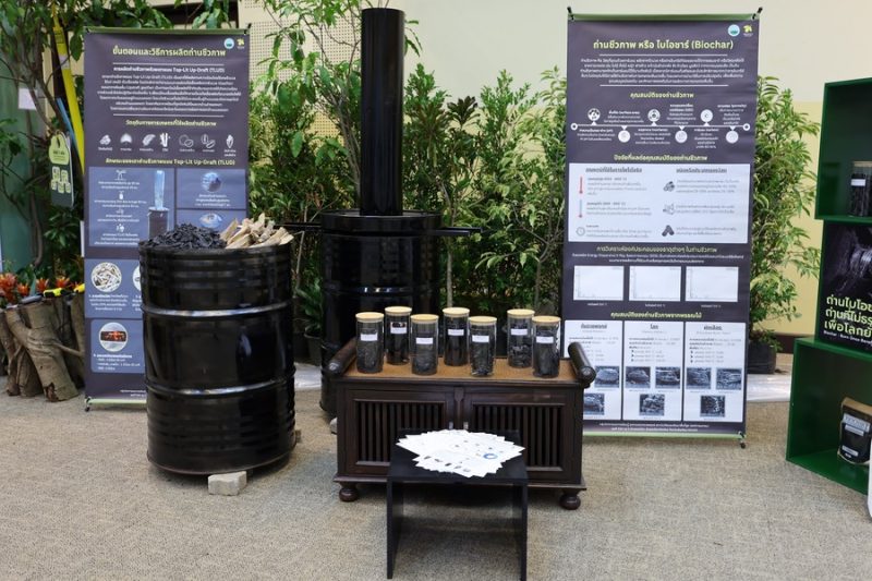 หนึ่งในพื้นที่ดำเนินงานต้นแบบที่สำคัญของสวพส. คือ อุทยานหลวงราชพฤกษ์ จังหวัดเชียงใหม่ ซึ่งถูกพัฒนาขึ้นเป็นแหล่งเรียนรู้ด้านการอนุรักษ์สิ่งแวดล้อม พลังงานสะอาด และการจัดการพื้นที่สีเขียวอย่างยั่งยืน โดย สวพส. ใช้อุทยานฯ เป็นพื้นที่ต้นแบบและขยายผลงานวิจัยด้านการตรวจวัดคาร์บอนในต้นไม้ การประเมินศักยภาพการดูดซับก๊าซเรือนกระจก การผลิตและการใช้ประโยชน์จากถ่านชีวภาพ (Biochar) การจัดการเศษไม้และกิ่งไม้ให้เกิดประโยชน์สูงสุด ตลอดจนการฟื้นฟูพื้นที่สีเขียวเพื่อเพิ่มการกักเก็บคาร์บอนในระยะยาว สามารถสะท้อนแนวคิดการพัฒนาพื้นที่สูงคาร์บอนต่ำได้อย่างเป็นรูปธรรม
