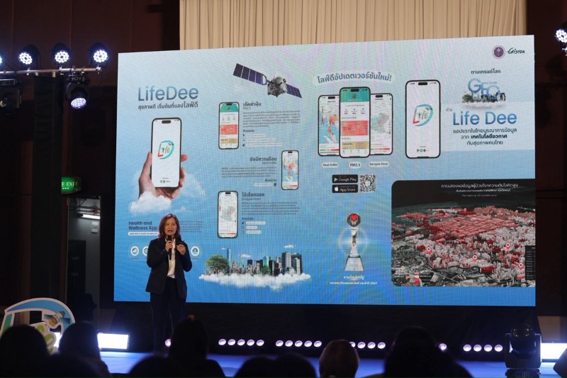 สำนักงานพัฒนาเทคโนโลยีอวกาศและภูมิสารสนเทศ (องค์การมหาชน) หรือ GISTDA ภายใต้กระทรวงการอุดมศึกษา วิทยาศาสตร์ วิจัยและนวัตกรรม (อว.) ร่วมกับ กรมอนามัย กระทรวงสาธารณสุข จัดงานเปิดตัวแอปพลิเคชัน LifeDee V.2 เพิ่มฟังก์ชันการใช้งาน โดยการนำเอาเทคโนโลยีภูมิสารสนเทศประยุกต์ใช้ด้านสุขภาพ หรือ GeoHealth แจ้งเตือนพื้นที่เสี่ยงโรคไข้เลือดออกและการติดตามดัชนีความร้อน” เมื่อวันพฤหัสบดีที่ 11 กันยายน 2568 ณ ห้องมิราเคิล แกรนด์ C ชั้น 4 โรงแรมมิราเคิล แกรนด์ คอนเวนชั่น กรุงเทพมหานคร