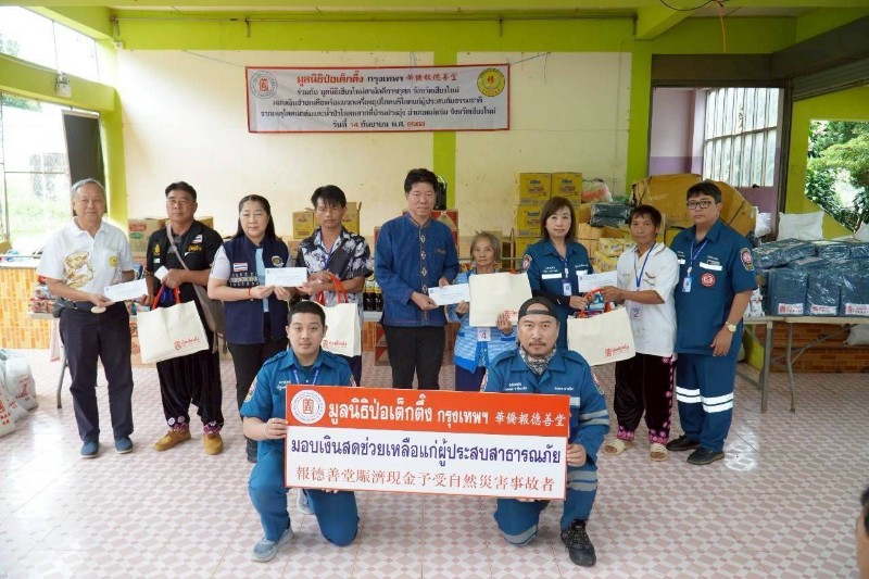วานนี้ (วันอาทิตย์ที่ 14 กันยายน พ.ศ. 2568) มูลนิธิป่อเต็กตึ๊ง นำโดย นางศิริพร กระจ่างหล้า ผู้จัดการฝ่ายสังคมสงเคราะห์ พร้อมด้วย นายรัชพร ประสงค์ทรัพย์ หัวหน้าแผนกสาธารณภัย นำทีมลงพื้นที่หมู่บ้านปางอุ๋ง อำเภอแม่แจ่ม จังหวัดเชียงใหม่ เพื่อช่วยเหลือผู้ประสบภัยจากเหตุดินโคลนถล่มและน้ำป่าไหลหลาก โดยแจกจ่ายเครื่องอุปโภคบริโภคให้แก่ผู้ได้รับผลกระทบ รวม 200 ชุด รวมทั้ง มอบเงินปลอบขวัญให้แก่ผู้บาดเจ็บรวม 4 รายๆ ละ 5,000 บาท พร้อมกระเช้าสุขภาพ มอบเงินช่วยเหลือให้แก่ผู้ที่บ้านเรือนพังเสียหายทั้งหลัง รวม 34 หลังๆ ละ 12,000 บาท และมอบเงินค่าฌาปนกิจให้แก่ญาติผู้เสียชีวิตรวม 3 รายๆ ละ 20,000 บาท รวมงบประมาณการช่วยเหลือในครั้งนี้ทั้งสิ้น 594,800 บาท (ห้าแสนเก้าหมื่นสี่พันแปดร้อยบาทถ้วน) โดยมี นายเกรียงศักดิ์ บุญตาปวน นายอำเภอแม่แจ่ม พร้อมด้วย คณะมูลนิธิเชียงใหม่สามัคคีการกุศล จังหวัดเชียงใหม่ เป็นผู้ประสานงานและร่วมในพิธี