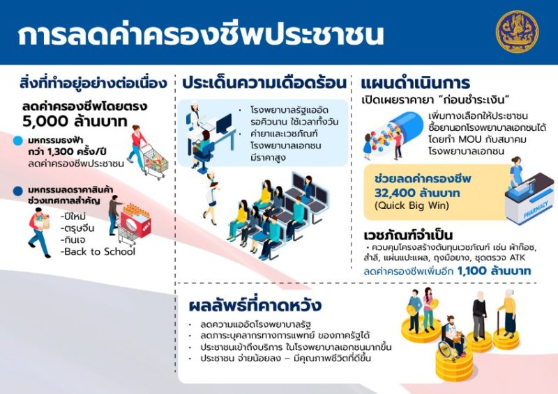 นายวิทยากร กล่าวต่อว่า “อีกหนึ่งมาตรการที่ถือเป็น Quick Big Win คือการลงนามบันทึกความร่วมมือ (MOU) กับสมาคมโรงพยาบาลเอกชน เพื่อเปิดเผยราคายาและเวชภัณฑ์ก่อนการชำระเงิน ช่วยให้ผู้ป่วยสามารถเลือกซื้อยาจากร้านขายยาภายนอกได้อย่างโปร่งใสและเป็นธรรม คาดว่าจะช่วยประชาชนประหยัดค่าใช้จ่ายกว่า 32,400 ล้านบาทต่อปี นอกจากนั้นยังช่วยลดความแออัดในโรงพยาบาลรัฐ และเปิดโอกาสให้โรงพยาบาลเอกชนมีผู้ใช้บริการเพิ่มขึ้น ด้านเวชภัณฑ์จำเป็น กรมฯ ยังได้เข้ามากำกับต้นทุนสินค้าสำคัญ เช่น ผ้าก๊อซ สำลี แผ่นแปะแผล ชุดตรวจ ATK ถุงมือยาง และแผ่นรองซับ โดยมาตรการดังกล่าวช่วยประหยัดค่าใช้จ่ายได้อีกกว่า 1,100 ล้านบาท