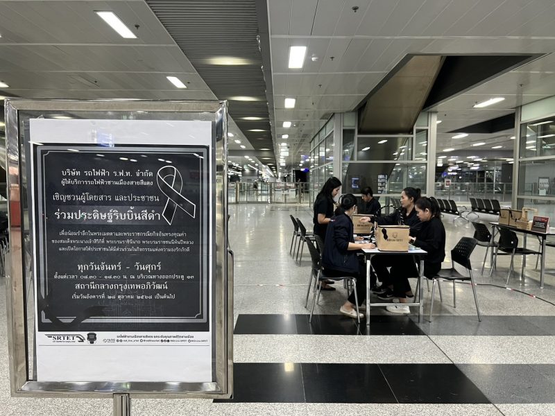 นายสุเทพ พันธุ์เพ็ง กรรมการผู้อำนวยการใหญ่ บริษัท รถไฟฟ้า ร.ฟ.ท. จำกัด ผู้ให้บริการรถไฟฟ้าชานเมืองสายสีแดง เปิดเผยว่า รฟฟท. ถือเป็นหน่วยงานที่รับใช้ใต้เบื้องพระยุคลบาท และน้อมนำแนวพระราชดำริ พระราชปณิธาน และพระบรมราโชบายของพระบาทสมเด็จพระบรมชนกาธิเบศร มหาภูมิพลอดุลยเดชมหาราช บรมนาถบพิตร และสมเด็จพระนางเจ้าสิริกิติ์ พระบรมราชินีนาถ พระบรมราชชนนีพันปีหลวง มาอย่างยาวนาน ในโอกาสนี้จึงขอเชิญชวนผู้โดยสาร และประชาชนทั่วไป ร่วมประดิษฐ์ริบบิ้นสีดำ เพื่อแสดงออกถึงความจงรักภักดี น้อมรำลึกในพระเมตตาและพระราชกรณียกิจอันทรงคุณค่า ของสมเด็จพระนางเจ้าสิริกิติ์ พระบรมราชินีนาถ พระบรมราชชนนีพันปีหลวง โดยสามารถเข้าร่วมประดิษฐ์ริบบิ้นสีดำ ได้ทุกวันจันทร์ – วันศุกร์ เริ่มวันอังคารที่ 28 ตุลาคม 2568 เป็นต้นไป ตั้งแต่เวลา 08.30 – 18.30 น. ณ บริเวณทางออกประตู 13 สถานีกลางกรุงเทพอภิวัฒน์