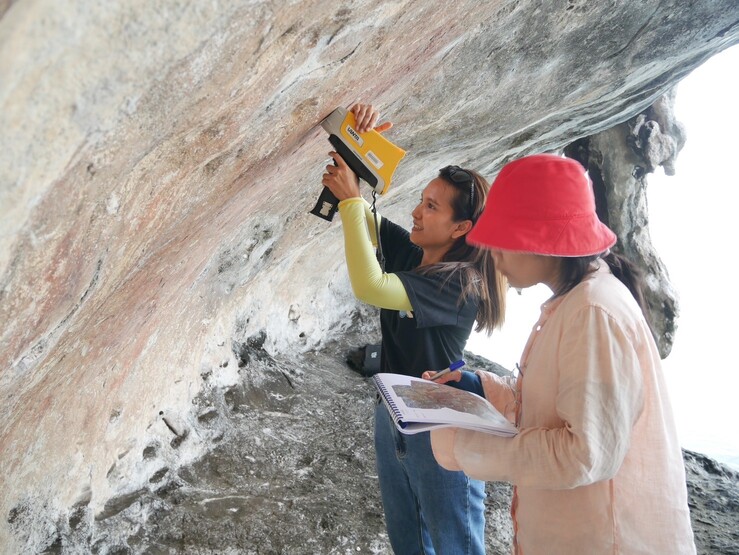 นักวิจัยสถาบันวิจัยแสงซินโครตรอน (องค์การมหาชน) กระทรวงการอุดมศึกษา วิทยาศาสตร์ วิจัยและนวัตกรรม (อว.) ร่วมมือทีมวิจัยมหาวิทยาลัยเกษตรศาสตร์ ลงพื้นที่อำเภออ่าวลึก จังหวัดกระบี่ สำรวจวิเคราะห์ธาตุองค์ประกอบ จากภาพเขียนสีโบราณก่อนประวัติศาสตร์บนผนังถ้ำอายุราว 2,000-3,000 ปี ปูทางสู่การระบุแหล่งที่มาของวัตถุดิบที่นำมาใช้ในการผลิตสีภาพเขียนโบราณ ส่งเสริมความเข้าใจในประวัติศาสตร์ของพื้นที่จังหวัดกระบี่อย่างลึกซึ้ง