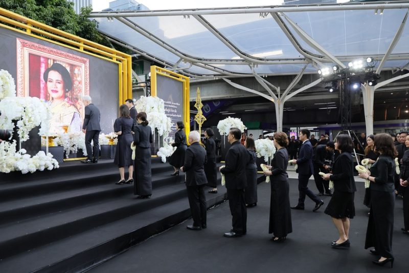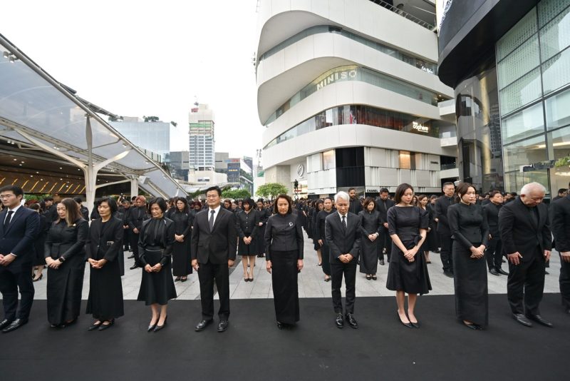 กลุ่มบริษัท เดอะมอลล์ กรุ๊ป ผู้บริหารศูนย์การค้าและห้างสรรพสินค้า เดอะมอลล์ไลฟ์สโตร์, เอ็มโพเรียม, เอ็มควอเทียร์, เอ็มสเฟียร์ และสยามพารากอน นำโดย คุณศุภลักษณ์ อัมพุช ประธานกรรมการบริหาร ผู้บริหาร และพนักงาน จัดพิธีตักบาตรอุทิศถวายพระราชกุศล ตลอดจนพิธีน้อมถวายความอาลัยเบื้องหน้าพระฉายาลักษณ์ สมเด็จพระนางเจ้าสิริกิติ์พระบรมราชินีนาถ พระบรมราชชนนีพันปีหลวง ณ ลานควอเทียร์พาร์ค ศูนย์การค้าเอ็มควอเทียร์