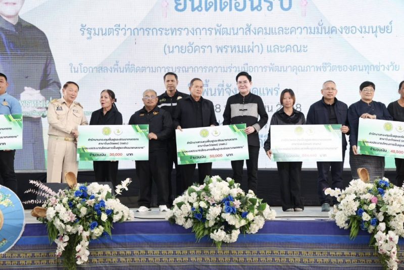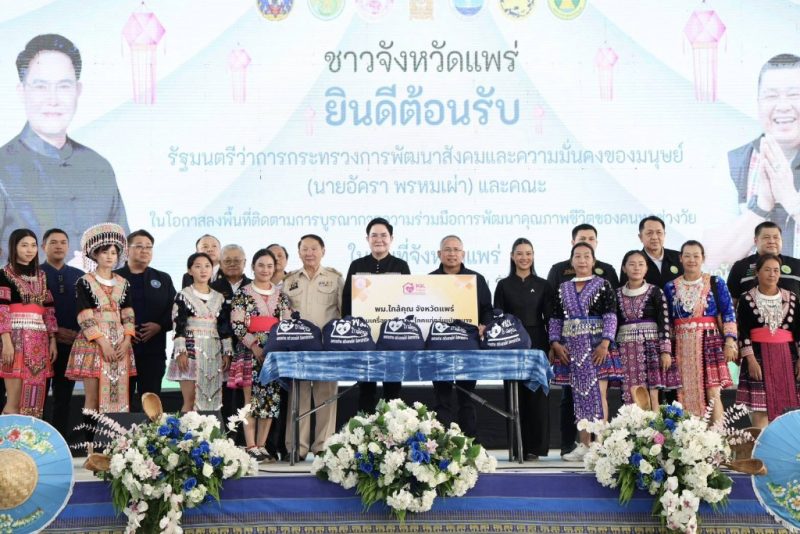 28 พฤศจิกายน 2568 -นายอัครา พรหมเผ่า รัฐมนตรีว่าการกระทรวงการพัฒนาสังคมและความมั่นคงของมนุษย์ (รมว.พม.) ลงพื้นที่จังหวัดแพร่ เพื่อตรวจติดตามการบูรณาการความร่วมมือการพัฒนาคุณภาพชีวิตของคนทุกช่วงวัย พร้อมมอบนโยบายการขับเคลื่อนการบูรณาการพัฒนาคุณภาพชีวิตของคนทุกช่วงวัย จากนั้นมอบถุงยังชีพ “ถุงฮีล(Heal)ใจ พม.ใกล้คุณ” เครื่องอุปโภคบริโภคที่จำเป็นให้กลุ่มเปราะบางจำนวน 400 ราย เพื่อบรรเทาความเดือดร้อน พร้อมทั้งมอบงบประมาณสนับสนุนขบวนองค์กรชุมชนจังหวัดแพร่ ปีงบประมาณ 2569 จำนวน 6 โครงการ เป็นเงิน 4,799,674 บาท โดยมี นายกันตพงศ์ รังษีสว่าง ปลัดกระทรวงการพัฒนาสังคมและความมั่นคงของมนุษย์ (ปลัด พม.) คณะผู้บริหารกระทรวงการพัฒนาสังคมและความมั่นคงของมนุษย์ (พม.) , กระทรวงเกษตรและสหกรณ์ (กษ.) , กระทรวงศึกษาธิการ (ศธ.) และกระทรวงการท่องเที่ยวและกีฬา (กก.) และผู้แทนหน่วยงานที่เกี่ยวข้อง เข้าร่วม ณ โดมสนามกีฬาองค์การบริหารส่วนจังหวัดแพร่ ตำบลในเวียง อำเภอเมือง จังหวัดแพร่