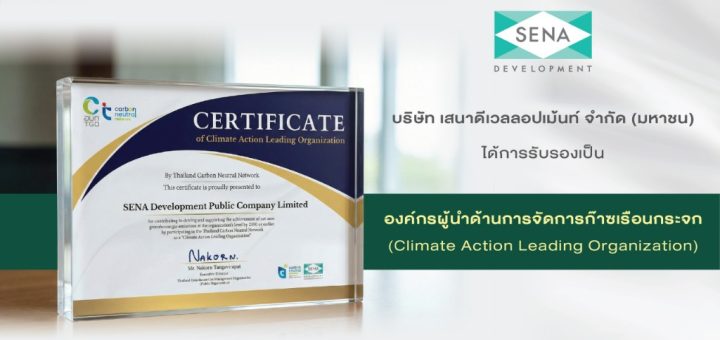 เสนา ได้รับการรับรองเป็น “องค์กรผู้นำด้านการจัดการก๊าซเรือนกระจก (CALO)”