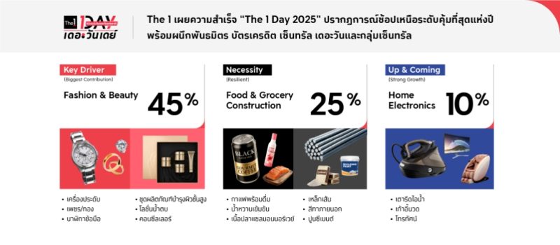 • ยอดใช้จ่ายในช่วง The 1 Day 2025 มากกว่า 1,000 ล้านบาท (เติบโต 2 เท่า เมื่อเทียบกับ The 1 Day 2024)