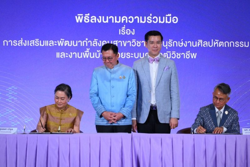 ทั้งนี้ เพื่อให้สอดรับเป้าหมายการพัฒนางานศิลปหัตถกรรมไทยที่ยั่งยืน SACIT ยังได้ร่วมลงนามบันทึกข้อตกลงความร่วมมือกับสถาบันคุณวุฒิวิชาชีพ (องค์การมหาชน) เพื่อสนับสนุนส่งเสริมและพัฒนา “คน” ผ่านการฝึกอบรม และรับรองสมรรถนะของบุคคลตามมาตรฐานอาชีพในสาขาวิชาชีพ ด้านการอนุรักษ์งานศิลปหัตถกรรม เพื่อต่อยอดองค์ความรู้และพัฒนาผลิตภัณฑ์ วางรากฐานที่แข็งแรงสู่ความยั่งยืน โดยมุ่งหวังว่าความร่วมมือนี้จะเป็นรากฐาน เพื่อให้เกิดการพัฒนาหลักสูตรเพื่อยกระดับทักษะความรู้ของช่างศิลปหัตถกรรมในแขนงต่าง ๆ อันจะนำมาสู่การพัฒนางานศิลปหัตถกรรมไทยที่สามารถตอบโจทย์ความต้องการของตลาด เพื่อสร้างความยั่งยืนได้ในที่สุด