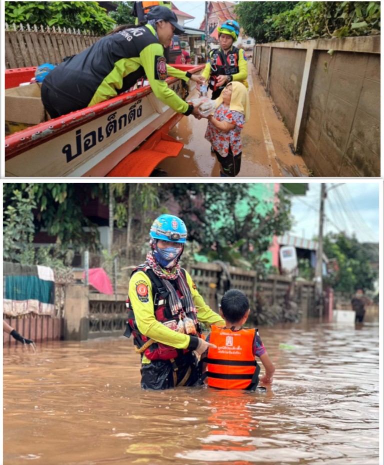 27 ก.ค.68- มูลนิธิป่อเต็กตึ๊ง โดยทีมบรรเทาสาธารณภัยนำกู้ชีพกู้ภัยนำอาหารปรุงสุก น้ำดื่มพร้อมยาเวชภัณฑ์ และอาหารสุนัข,แมว ลงเรือไปแจกจ่ายให้กับประชาชนในซอยวัดมณเฑียรพื้นที่อำเภอเมืองจ.น่าน ทั้งนี้พบว่าสภาวะน้ำบางพิ้นที่ลดลงตามลำดับ แต่บางพื้นที่ระดับน้ำยังทรงตัว