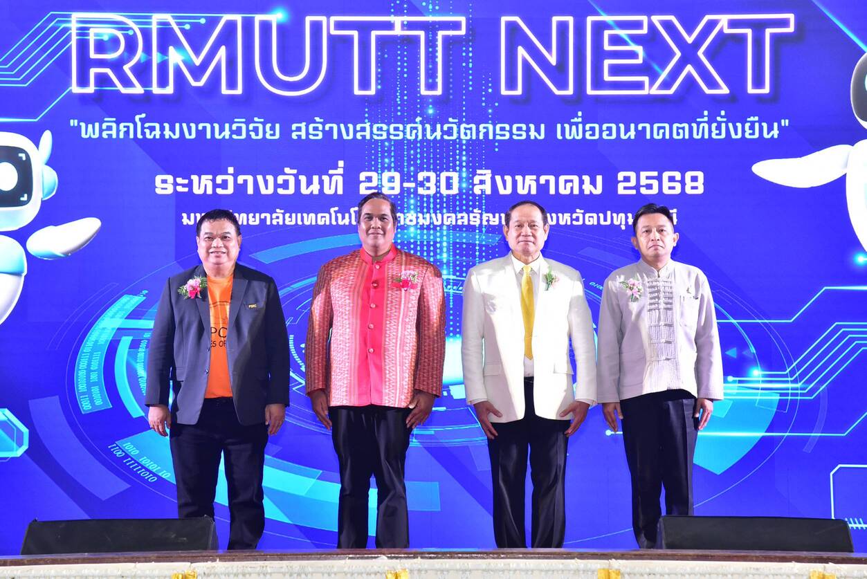 มทร.ธัญบุรี จัดงาน RMUTT EXPO 2025 ‘พลิกโฉมงานวิจัย-สร้างนวัตกรรม เพื่ออนาคตที่ยั่งยืน’ มหาวิทยาลัยเทคโนโลยีราชมงคลธัญบุรี (มทร.ธัญบุรี) จัดงานมหกรรมวิจัยและนวัตกรรมครั้งยิ่งใหญ่ “RMUTT EXPO 2025” ภายใต้แนวคิด “RMUTT NEXT พลิกโฉมงานวิจัย สร้างสรรค์นวัตกรรม เพื่ออนาคตที่ยั่งยืน” โดยมี ดร.พันธุ์เพิ่มศักดิ์ อารุณี ผู้ช่วยปลัดกระทรวงการอุดมศึกษา วิทยาศาสตร์ วิจัยและนวัตกรรม (อว.) ให้เกียรติเป็นประธานในพิธีเปิด ณ หอประชุมราชมงคล มทร.ธัญบุรี จ.ปทุมธานี ซึ่งการจัดงานครั้งนี้สะท้อนวิสัยทัศน์ของมหาวิทยาลัยที่มุ่งมั่นยกระดับผลงานวิจัยและนวัตกรรมไปสู่การใช้ประโยชน์จริง สอดคล้องกับนโยบาย “สร้างปัญญา เปิดโอกาส สร้างอนาคต” และตอบรับกับเป้าหมายการพัฒนาที่ยั่งยืน (SDGs) ขององค์การสหประชาชาติ