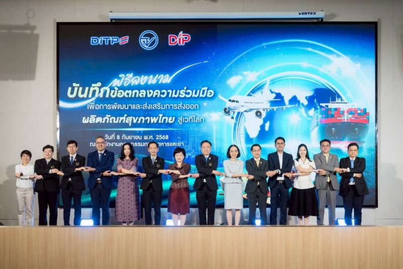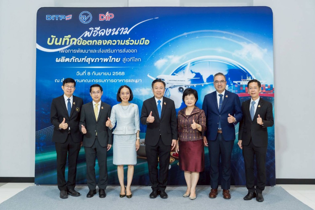 อย. ผนึกกำลัง กรมส่งเสริมการค้าระหว่างประเทศ และกรมทรัพย์สินทางปัญญา ลงนามข้อตกลงความร่วมมือ มุ่งผลักดันการส่งออกผลิตภัณฑ์สุขภาพไทยสู่เวทีโลกอย่างเป็นระบบและยั่งยืน