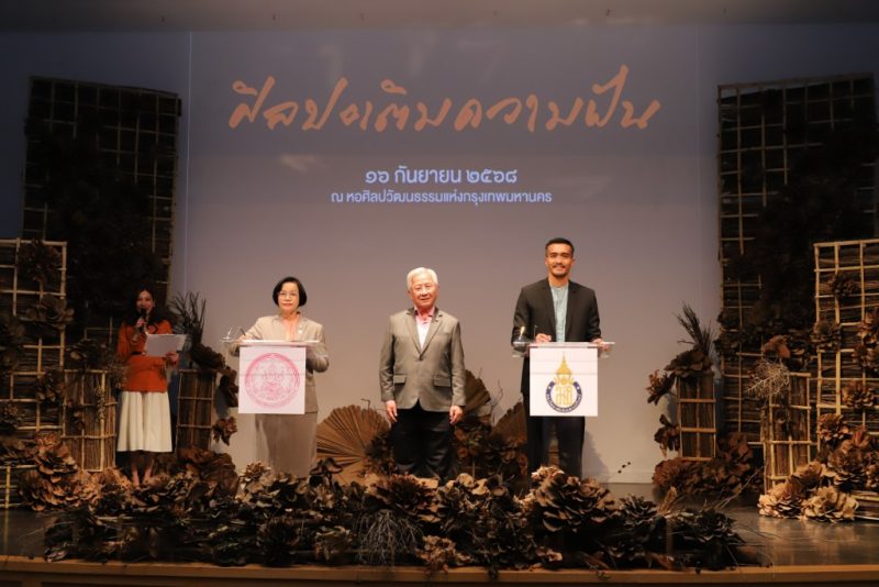 ภายในงานมีการปาฐกถา เรื่อง กว่าจะเป็น “ศิลปะเติมความฝัน” และการลงนามบันทึกความเข้าใจ (MOU) ระหว่างกระทรวงการพัฒนาสังคมและความมั่นคงของมนุษย์ และมหาวิทยาลัยสงขลานครินทร์ โดยนางอภิญญา ชมภูมาศ อธิบดีกรมกิจการเด็กและเยาวชน และ ผู้ช่วยศาสตราจารย์ศิริชัย พุ่มมาก คณบดีคณะศิลปกรรมศาสตร์ มหาวิทยาลัยสงขลานครินทร์ ร่วมลงนาม โดยมีศาสตราจารย์กนก วงษ์ตระหง่าน เป็นสักขีพยาน การลงนาม MOU มีวัตถุประสงค์เพื่อให้เด็กและเยาวชนในสถานรองรับและกลุ่มที่ได้รับผลกระทบจากสถานการณ์ชายแดนใต้ ได้รับการดูแลและพัฒนาในทุกมิติ ทั้งด้านอารมณ์ จิตใจ และทักษะชีวิต รวมถึงการเสริมสร้างความมั่นใจ และพัฒนาความสามารถในการแสดงออกอย่างเหมาะสม เพื่อให้เด็กได้เรียนรู้การปรับตัวอยู่ในสังคมที่เปลี่ยนแปลงไปอย่างเท่าทันและมีความสุข และเป็นการดำเนินงานแบบบูรณาการความร่วมมือจาก คณะศิลปกรรมศาสตร์ มหาวิทยาลัยสงขลานครินทร์ เครือข่ายภาครัฐ ภาคประชาสังคม และผู้ดูแลเด็ก เพื่อร่วมกันพัฒนากิจกรรมที่มีคุณภาพและตรงกับความต้องการของเด็กและเยาวชนในพื้นที่