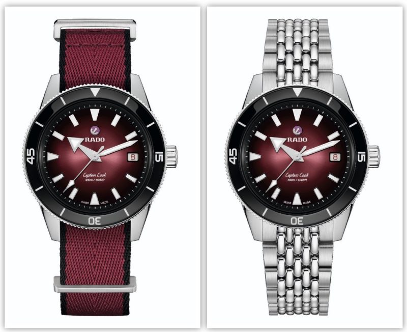 แรงบันดาลใจจากนาฬิการุ่นวินเทจปี 2505 ถูกตีความใหม่อย่างร่วมสมัยใน Rado Captain Cook ที่มาพร้อมตัวเรือน สแตนเลสสตีลขัดเงาขนาด 39 มม. โดดเด่นด้วยหน้าปัดไล่เฉดสีดำสู่เบอร์กันดีที่ให้บรรยากาศคลาสสิกแต่ทันสมัย
