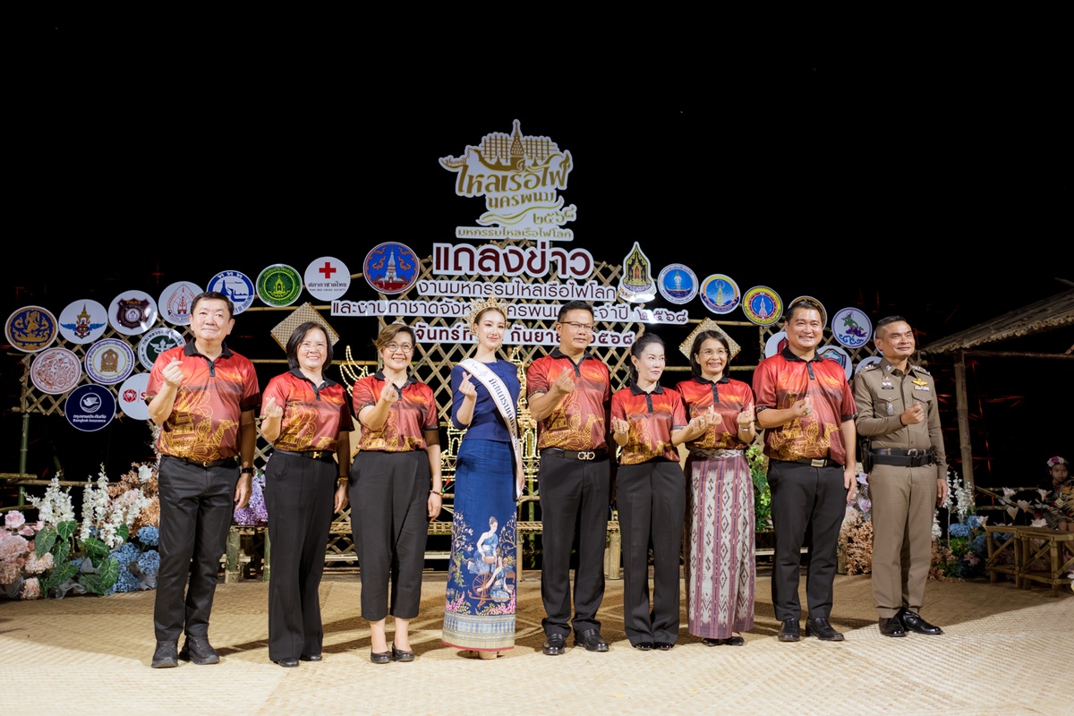 นายปราชญา อุ่นเพชรวรากร ผู้ว่าราชการจังหวัดนครพนม เป็นประธาน พร้อมด้วย นางธนวัน อุ่นเพชรวรากร นายกเหล่ากาชาดจังหวัดนครพนม, นางยุวดี มีบุญ วัฒนธรรมจังหวัดนครพนม, นางสาวเสาวนีย์ คนกล้า ผู้อำนวยการการท่องเที่ยวแห่งประเทศไทย สำนักงานนครพนม, นายอนุชิต หงษาดี นายกองค์การบริหารส่วนจังหวัดนครพนม, ายนิวัต เจียวิริยบุญญา นายกเทศมนตรีเมืองนครพนม และ พ.ต.อ.อนุสรณ์ มั่งมี รองผู้บังคับการตำรวจภูธรจังหวัดนครพนม ร่วมแถลงข่าว บริเวณซุ้มวิถีคนทำเรือไฟอำเภอเมืองนครพนม ริมฝั่งโขง ตำบลในเมือง อำเภอเมืองนครพนม จังหวัดนครพนม ในการเตรียมความพร้อมการจัดงานประเพณีไหลเรือไฟและงานกาชาดจังหวัดนครพนม ประจำปี 2568 ด้านการจัดกิจกรรม, การรักษาความปลอดภัย, การจราจร, สถานที่พัก และการอำนวยความสะดวกในด้านต่างๆ ที่จะมีขึ้น เพื่อรองรับนักท่องเที่ยวที่จะเดินทางมาเยือนจังหวัดนครพนม ในช่วงวันออกพรรษา ระหว่างวันที่ 27 กันยายน-8 ตุลาคม 2568