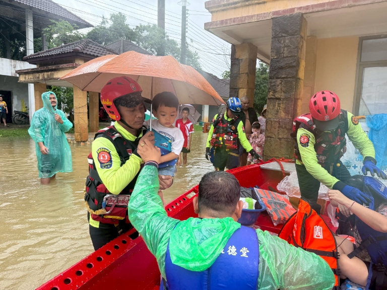 มูลนิธิป่อเต็กตึ๊ง ลุยเข้าพื้นที่ อพยพผู้ประสบภัยน้ำท่วมชาวหาดใหญ่