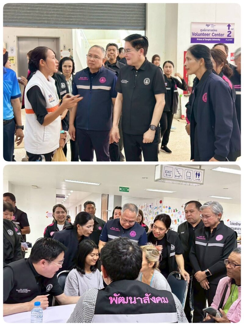 นายอัครา พรหมเผ่า รัฐมนตรีว่าการกระทรวงการพัฒนาสังคมและความมั่นคงของมนุษย์ (รมว.พม.) ลงพื้นที่ ณ ศูนย์พักพิงชั่วคราว มหาวิทยาลัยสงขลานครินทร์ (ม.อ.) วิทยาเขตหาดใหญ่ จังหวัดสงขลา เพื่อติดตามการช่วยเหลือกลุ่มเปราะบาง อาทิ เด็กเล็ก ผู้สูงอายุ และคนพิการ รวมถึงประชาชนผู้ประสบอุทกภัยตามภารกิจกระทรวง พม. โดยพบปะเยี่ยมให้กำลัง พร้อมพูดคุยรับฟังปัญหาความเดือดร้อนต่างๆ สำหรับการให้ความช่วยเหลือตามภารกิจกระทรวง พม. โดยด่วน หลังน้ำลด โดยมี นายกองตรี ดร.ธนกฤต จิตรอารีย์รัตน์ เลขานุการรัฐมนตรีว่าการกระทรวง พม., นายกันตพงศ์ รังษีสว่าง ปลัดกระทรวง พม., คณะผู้บริหารกระทรวง พม., หัวหน้าหน่วยงาน พร้อมเจ้าหน้าที่ ทีม พม. ใกล้คุณ จังหวัดสงขลาและจังหวัดใกล้เคียง ร่วมลงพื้นที่