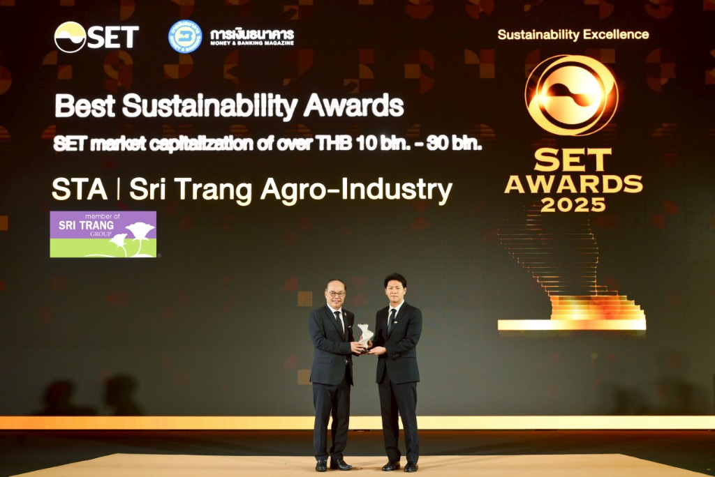 บริษัท ศรีตรังแอโกรอินดัสทรี จำกัด (มหาชน) หรือ STA ผู้นำธุรกิจยางธรรมชาติครบวงจรรายใหญ่ที่สุดของโลกและผู้ผลิตถุงมือยางอันดับหนึ่งของประเทศไทย ประกาศความสำเร็จด้านการดำเนินธุรกิจอย่างยั่งยืน โดย นายวิชญ์พล สินเจริญกุล กรรมการบริหารและกรรมการพัฒนาเพื่อความยั่งยืน STA ผู้แทนบริษัทฯ รับรางวัล Best Sustainability Awards กลุ่มรางวัลสาขา Sustainability Excellence สำหรับกลุ่มบริษัทจดทะเบียนในตลาดหลักทรัพย์แห่งประเทศไทย ที่มีมูลค่าหลักทรัพย์ตามราคาตลาดสูงกว่า 10,000 ล้านบาท แต่ไม่เกิน 30,000 ล้านบาท โดยได้รับเกียรติจากศาสตราจารย์พิเศษ กิติพงศ์ อุรพีพัฒนพงศ์ ประธานกรรมการตลาดหลักทรัพย์แห่งประเทศไทย ในงาน SET Awards 2025 ณ อาคารตลาดหลักทรัพย์แห่งประเทศไทย เมื่อวันที่ 27 พฤศจิกายน 2568 ที่ผ่านมา