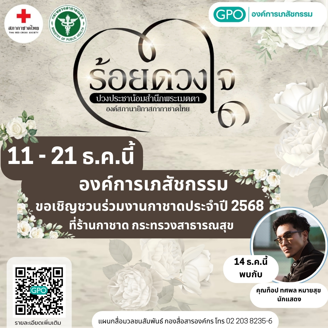 11 – 21 ธ.ค.นี้ องค์การเภสัชกรรม ขอเชิญชวนร่วมงานกาชาดปี68 ร้านกาชาดกระทรวงสาธารณสุข