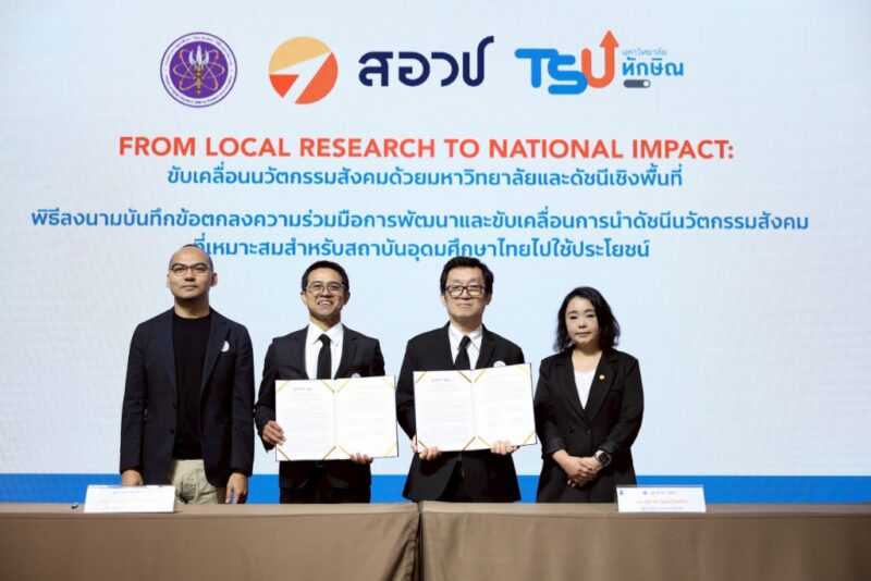 กระทรวงอว. โดย สอวช. ร่วมกับ ม.ทักษิณ ผนึกกำลังขับเคลื่อน “นวัตกรรมสังคม” ด้วยมหาวิทยาลัยและดัชนีเชิงพื้นที่ เพิ่มคุณภาพชีวิตประชาชน สร้างเศรษฐกิจฐานราก ลดความเหลื่อมล้ำอย่างยั่งยืน