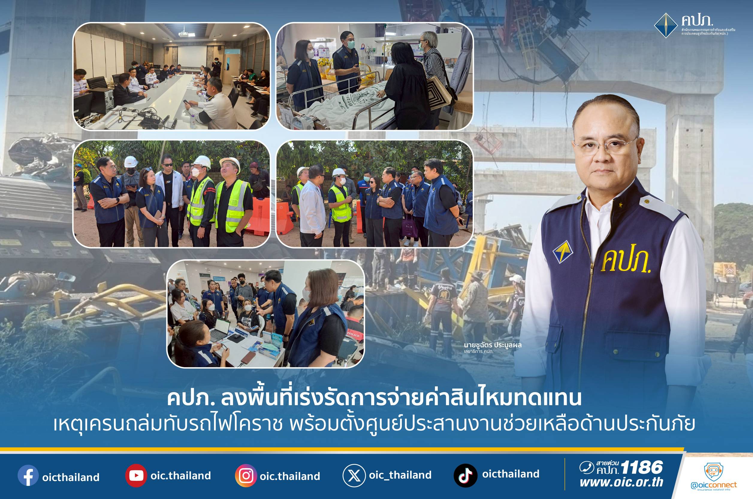 จากกรณีเกิดอุบัติภัยรายใหญ่ เหตุเครนในโครงการก่อสร้างรถไฟความเร็วสูงของการรถไฟแห่งประเทศไทยพังถล่มลงมาทับขบวนรถไฟด่วนพิเศษ ขบวนที่ 21 ณ จังหวัดนครราชสีมา เมื่อวันที่ 14 มกราคม 2569 ส่งผลให้ตู้โดยสารตกรางและเกิดเพลิงไหม้อย่างรุนแรง เป็นเหตุให้มีผู้บาดเจ็บและผู้เสียชีวิตจำนวนมาก. เมื่อวันที่ 16 มกราคม 2569 นายชูฉัตร ประมูลผล เลขาธิการคณะกรรมการกำกับและส่งเสริมการประกอบธุรกิจประกันภัย (เลขาธิการ คปภ.) ได้มอบหมายให้ นางสาวชัชวริน โชติชูตระกูล ผู้ช่วยเลขาธิการ สายคุ้มครองสิทธิประโยชน์ และ นายคณานุสรณ์ เที่ยงตระกูล ผู้ช่วยเลขาธิการ สายบริหาร พร้อมด้วยนางสาวมณี ไวยภาษ ผู้อำนวยการสำนักงาน คปภ. ภาค 4 (นครราชสีมา) ลงพื้นที่ตรวจสอบจุดเกิดเหตุร่วมกับบริษัทผู้รับประกันภัยและบริษัทสำรวจภัย เพื่อเร่งรัดการจ่ายค่าสินไหมทดแทนแก่ผู้ได้รับบาดเจ็บและผู้เสียชีวิตให้ได้รับความช่วยเหลือโดยเร็วที่สุด