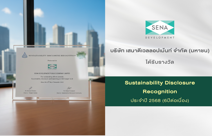 กลุ่มบริษัทเสนา ตอกย้ำผู้นำการอยู่อาศัยอย่างยั่งยืนรับรางวัล Sustainability Disclosure Award ปี 2568