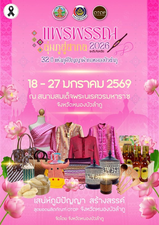 งาน “แพรพรรณลุ่มภูสู่สากล 2026” 18 – 27 มกราคม 2569 ณ สนามสมเด็จพระนเรศวรมหาราช จ.หนองบัวลำภู