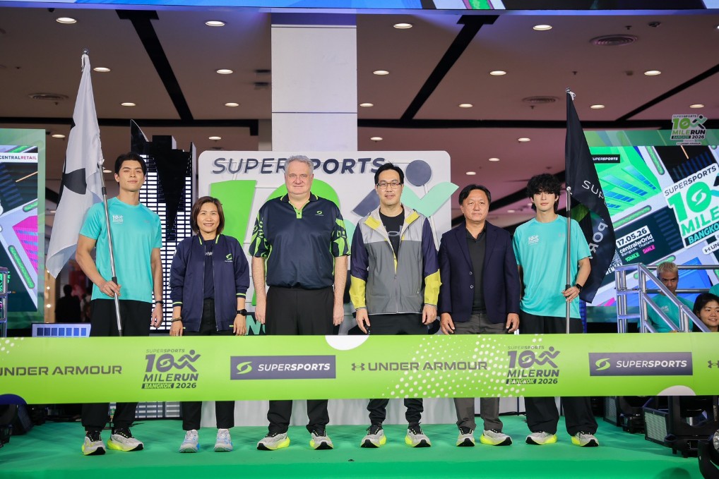Supersports (ซูเปอร์สปอร์ต) ในเครือเซ็นทรัล รีเทล แหล่งรวมสินค้าและแบรนด์กีฬาอันดับ 1 ของไทย ร่วมกับ Under Armour แบรนด์เสื้อผ้าและอุปกรณ์กีฬาชั้นนำระดับโลกจากสหรัฐอเมริกา จัดงานแถลงข่าวเปิดตัวการแข่งขันวิ่งรายการใหญ่แห่งปี “Supersports 10 Mile Run 2026 Presented by Under Armour” งานวิ่งใจกลางกรุงเทพฯ ที่ท้าทายทุกจังหวะฝีเท้า กับระยะทางสุดท้าทายรายการเดียวในประเทศไทยที่วัดระยะเป็นไมล์ ภายใต้คอนเซปต์ “Beat Your Mile, Make Your 10 Mile GREEN Memory” พร้อมชวนนักวิ่งทุกคนมาสร้างสถิติ 10 ไมล์ของตัวเอง และร่วมเป็นส่วนหนึ่งของงานวิ่งรักษ์โลก เมื่อวันที่ 28 มกราคม 2569 ณ ลาน Eden 1 ศูนย์การค้าเซ็นทรัลเวิลด์