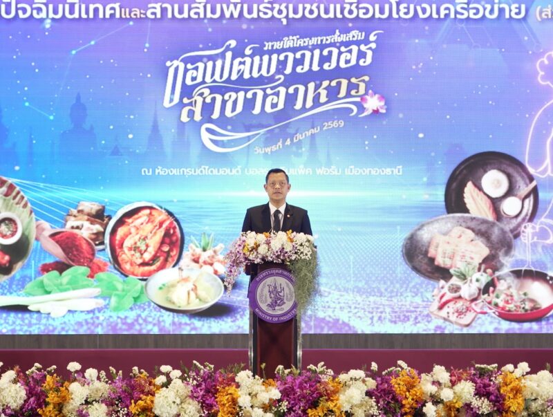 4 มีนาคม 2569 – กระทรวงอุตสาหกรรม โดยกรมส่งเสริมอุตสาหกรรม หรือดีพร้อม (DIPROM) เดินหน้าขับเคลื่อนยุทธศาสตร์ซอฟต์พาวเวอร์อาหารไทย พร้อมประกาศความสำเร็จในการยกระดับทักษะกำลังคนครั้งใหญ่ผ่านโครงการส่งเสริมซอฟต์พาวเวอร์สาขาอาหาร ประจำปีงบประมาณ พ.ศ. 2568ในกิจกรรมปัจฉิมนิเทศและสานสัมพันธ์ชุมชนเชื่อมโยงเครือข่ายภายใต้หลักสูตร “Master Thai Chef Program” มุ่งปั้น 20,000 เชฟทักษะสูงสู่การเป็นกำลังคนขับเคลื่อนยกระดับเมนูไทยสู่สินค้าพรีเมียมในเวทีโลก พร้อมสร้างระบบนิเวศการค้าที่ยั่งยืนเชื่อมโยงวัตถุดิบชุมชนต้นน้ำสู่ธุรกิจปลายน้ำ เพื่อกระตุ้นเม็ดเงินหมุนเวียนเศรษฐกิจฐานรากกว่า 3,300 ล้านบาท และเสริมเกราะป้องกันผู้ประกอบการด้วย Made by Thai และ เทคโนโลยี Data Analytics รับมือมาตรการกีดกันทางการค้าและนโยบายภาษีนำเข้าใหม่จากตลาดโลก