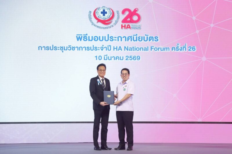 วันนี้ (10 มีนาคม 2569) ที่ อาคารอิมแพ็ค ฟอรั่ม เมืองทองธานี จ.นนทบุรี นายพัฒนา พร้อมพัฒน์รัฐมนตรีว่าการกระทรวงสาธารณสุข พร้อมด้วย นายวรโชติ สุคนธ์ขจร รัฐมนตรีช่วยว่าการกระทรวงสาธารณสุข ร่วมเปิดการประชุมวิชาการประจำปี HA National Forum ครั้งที่ 26 ภายใต้แนวคิด “Compassionate Innovation: Shaping the Future of Care นวัตกรรมที่เปี่ยมไปด้วยความใส่ใจ สร้างมิติใหม่ของการดูแล” พร้อมทั้งมอบประกาศนียบัตรรับรองคุณภาพสถานพยาบาลกว่า 400 แห่ง โดยมีผู้แทนจากสถานพยาบาลทุกระดับทั่วประเทศ ภาคีเครือข่าย ตลอดจนวิทยากรผู้ทรงคุณวุฒิทั้งในและต่างประเทศ เข้าร่วมกว่า 6,600 คน