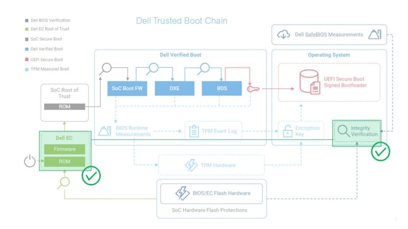 เดลล์ได้ยกระดับความสามารถในการตรวจสอบ BIOS ให้สอดคล้องกับมาตรฐานความปลอดภัยยุคหลังควอนตัม (Post-Quantum Standards) โดยสามารถตรวจจับการดัดแปลงได้ผ่านการเปรียบเทียบ BIOS กับข้อมูลอ้างอิงที่เชื่อถือได้ ซึ่งจัดเก็บไว้อย่างปลอดภัยบนคลาวด์ของเดลล์ หากพบความผิดปกติหรือข้อมูลไม่ตรงกัน ระบบตรวจสอบเฉพาะของเดลล์จะทำการแจ้งเตือนและทำเครื่องหมายบนอุปกรณ์ เพื่อให้ทีมงานสามารถตรวจสอบและตอบสนองต่อภัยคุกคามได้อย่างทันท่วงที