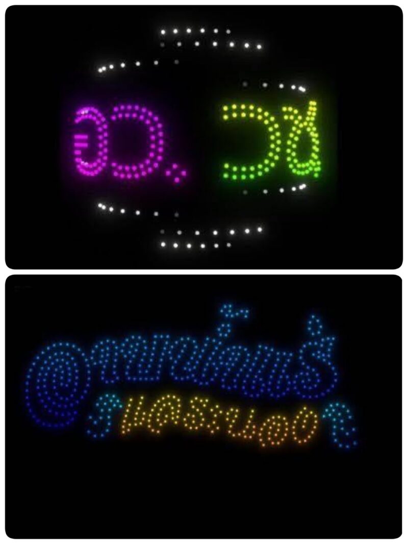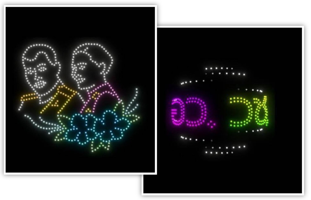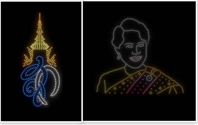 ถัดมาเป็นการแสดงโดรนแปรอักษร ถ่ายทอดสัญลักษณ์สำคัญของจังหวัดระนอง อาทิ