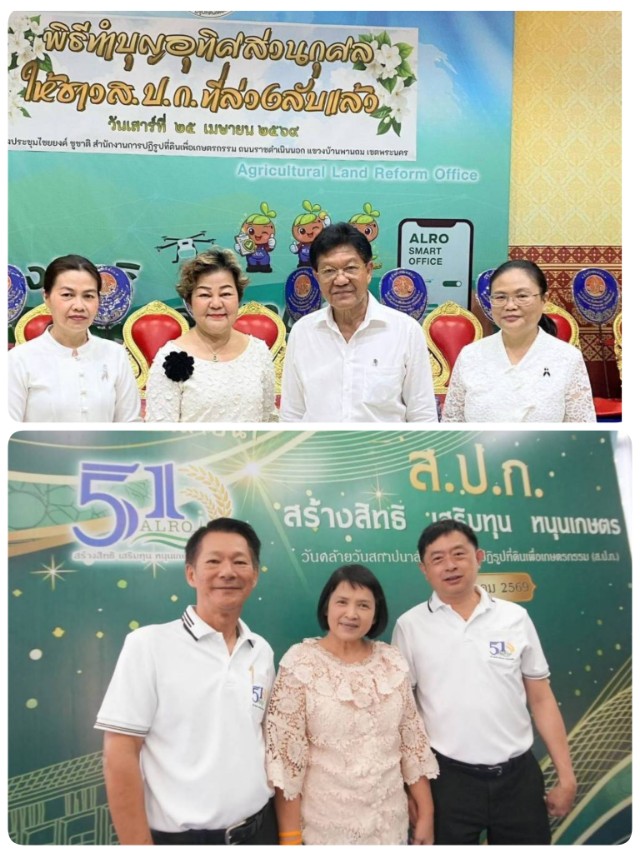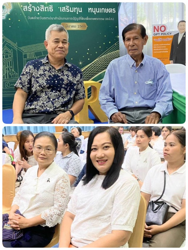 นางพรทิพย์ อุ้ยตา อดีตผู้อำนวยการสำนักบริหารกองทุน นายอาวุธ สุริยันต์ อดีตผู้อำนวยการสำนักจัดการแผนที่และสารบบที่ดิน(กรรมการชมรมผู้สูงอายุ ส.ป.ก.) นายอธิเมศร์ วงศ์ฤทธิ์เจริญ อดีตปฏิรูปที่ดินจังหวัดนราธิวาส (กรรมการชมรมผู้สูงอายุ ส.ป.ก.) นางสาวพอใจ คล้ายสวน อดีตปฏิรูปที่ดินจังหวัดอุตรดิตถ์ (กรรมการและเหรัญญิกชมรมผู้สูงอายุ ส.ป.ก.) นางสาวอมรรัตน์ แขวงโสภา ผู้อำนวยการสำนักบริหารกลาง นางดาวรุ่ง ตันติไวทยพันธุ์ ผู้อำนวยการสำนักจัดการแผนที่และสารบบที่ดิน