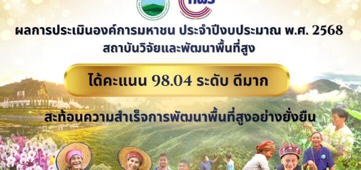 สวพส. ได้รับผลการประเมินการดำเนินงานองค์การมหาชน ประจำปีงบประมาณ พ.ศ. 2568จากสำนักงาน ก.พ.ร. ด้วยคะแนนรวม 98.04 ระดับ “ดีมาก” สถาบันวิจัยและพัฒนาพื้นที่สูง (องค์การมหาชน) หรือ สวพส. สร้างความภาคภูมิใจ …[อ่านข่าวเพิ่มเติม]
